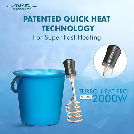 Nova Water Heater 2000W Shock Proof Immersion Rod with Rapid Heating Coil Technology | Copper & Nickel Plated with Extra Long Wire | ISI Certified 1 Year Replacement Warranty