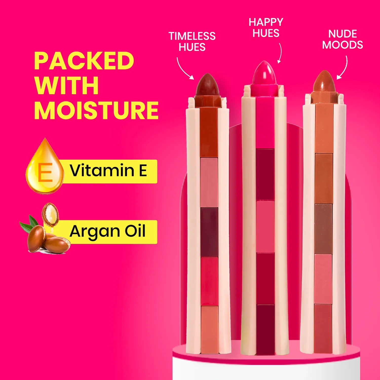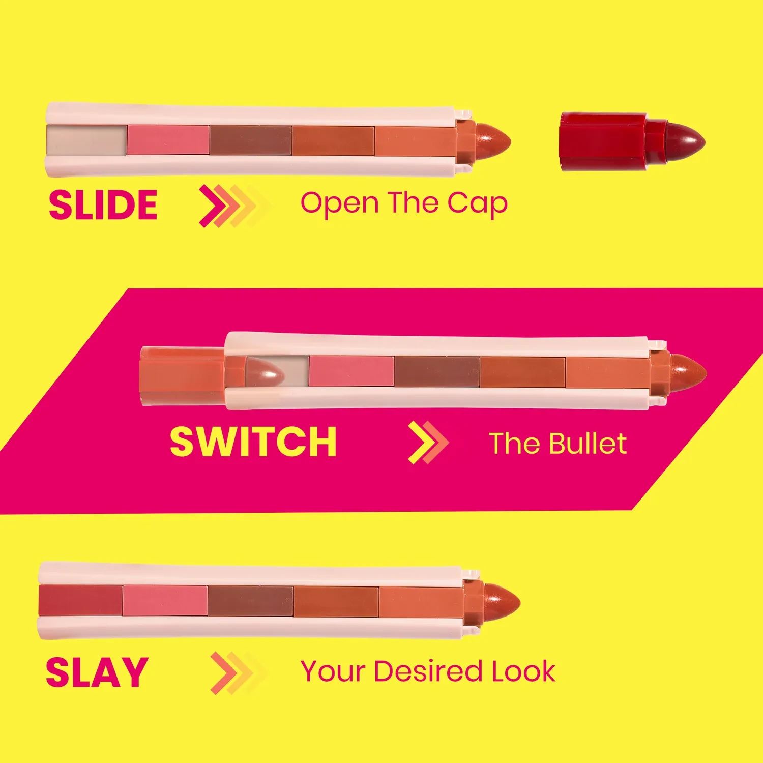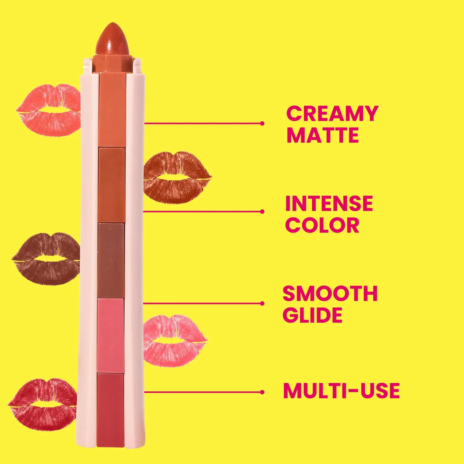 Introducing the NYbae 5 IN 1 LIPSTICK in the mesmerizing shade of Nude Moods, your ultimate lip companion for every occasion! This versatile product is designed to be your go-to lip solution, seamlessly transitioning from day to night with its exquisite formulation. Infused with nourishing ingredients, it provides a luxurious glide and comfortable wear while delivering intense color payoff. Whether you're aiming for a subtle daytime look or a sultry evening style, allow Nude Moods to enhance your natural beauty with its stunning neutral tones, making it perfect for all skin types. Elevate your makeup game with this all-in-one wonder that embodies convenience and chic sophistication.