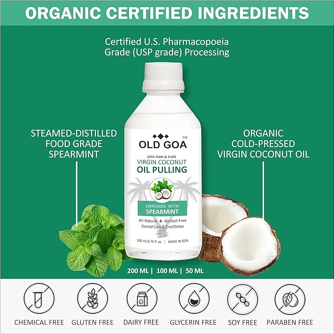 ORGANIC AND NATURAL: OldGoa Oil Pulling Mouthwash is a 100% Organic & natural product and derived from Non-GMO & freshly sourced coconuts so the oil that will be detoxifying your soft tissues starts free of toxins to give you a clean and healthy mouth.