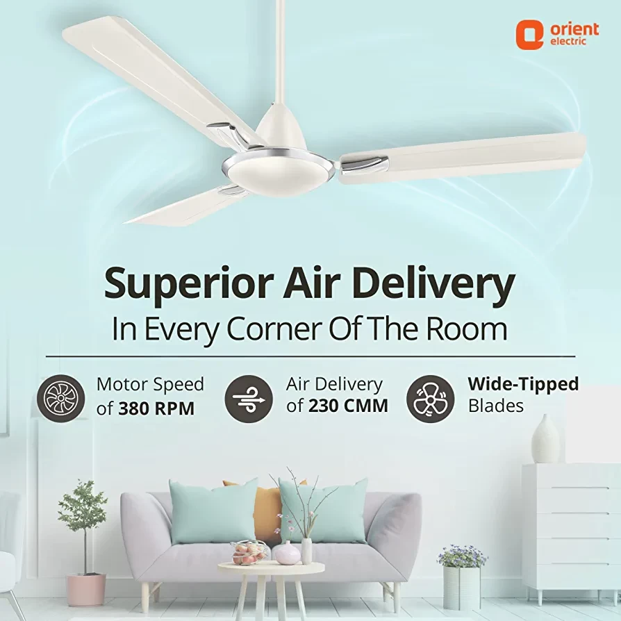 WIDE RIBBED BLADES: Operating at high speed of 320 RPM with air delivery of 230 CMM, keeps every corner of the room breezy.