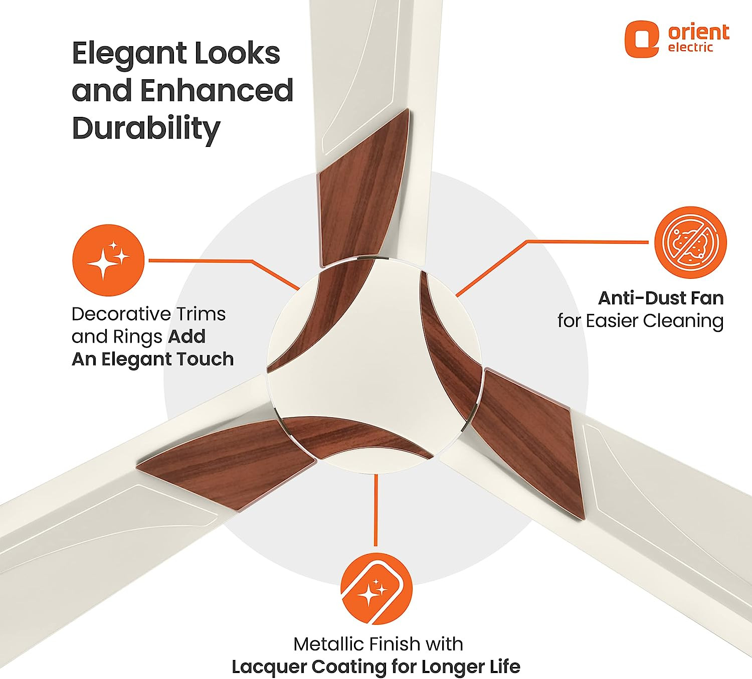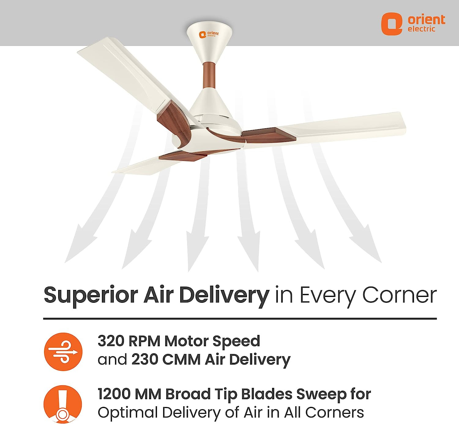 Orient Electric Wendy 1200mm Ceiling Fan (Pearl White/Walnut)