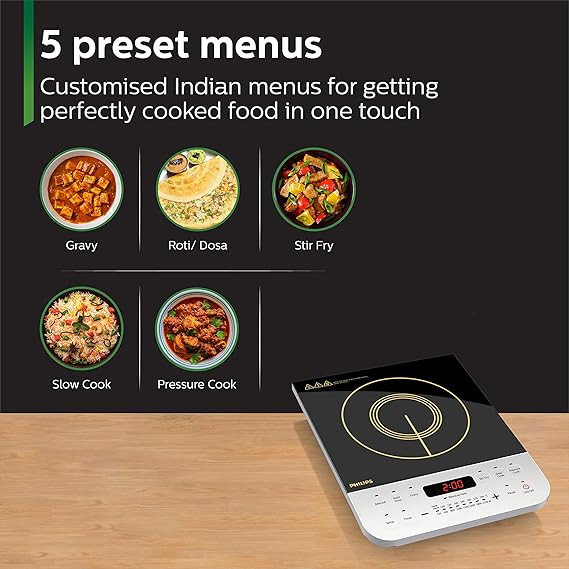 • Comes with 5 preset menus & Smart Sense technology that helps to detect right vessels for usage on Induction cooktop
