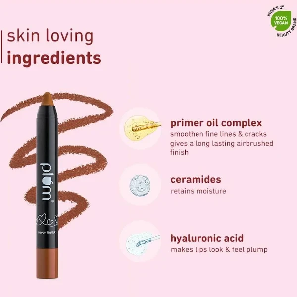 Indulge your lips in a luxurious burst of color with PLUM's Crayon Lipstick in Double Truffle 129. This luscious lipstick glides on effortlessly, delivering a rich, velvety texture that hugs your lips with intense pigmentation. Infused with nourishing ingredients, it not only offers stunning shades but also keeps your lips moisturized and comfortable throughout the day. Whether you’re going for a bold statement or a subtle enhancement, this crayon lipstick is your ultimate beauty companion.