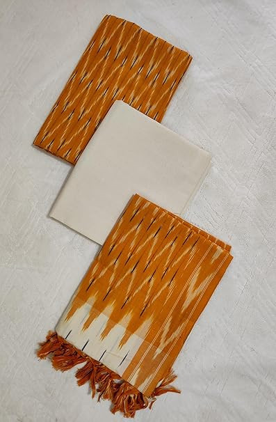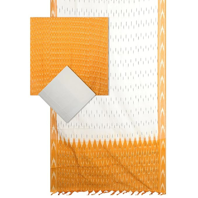 Pochampally Ikat Women Unstitched Cotton Dress Material Suit set - Yellow & Off White - VISS093
