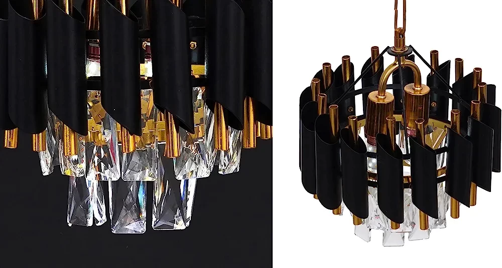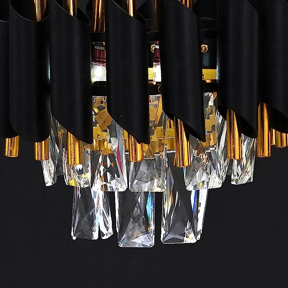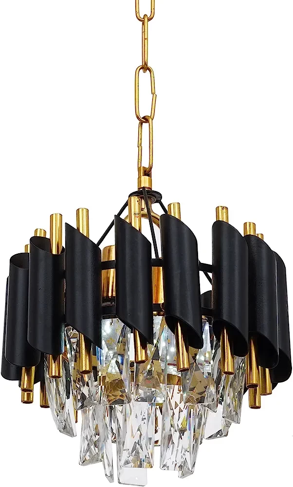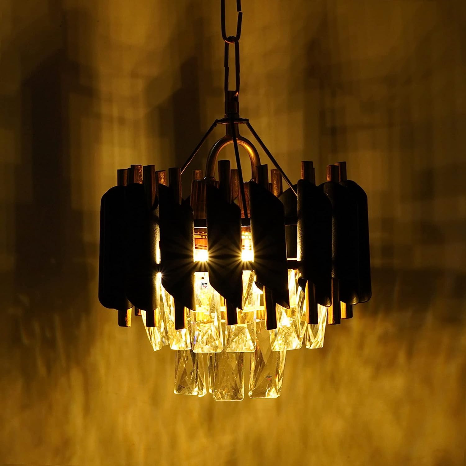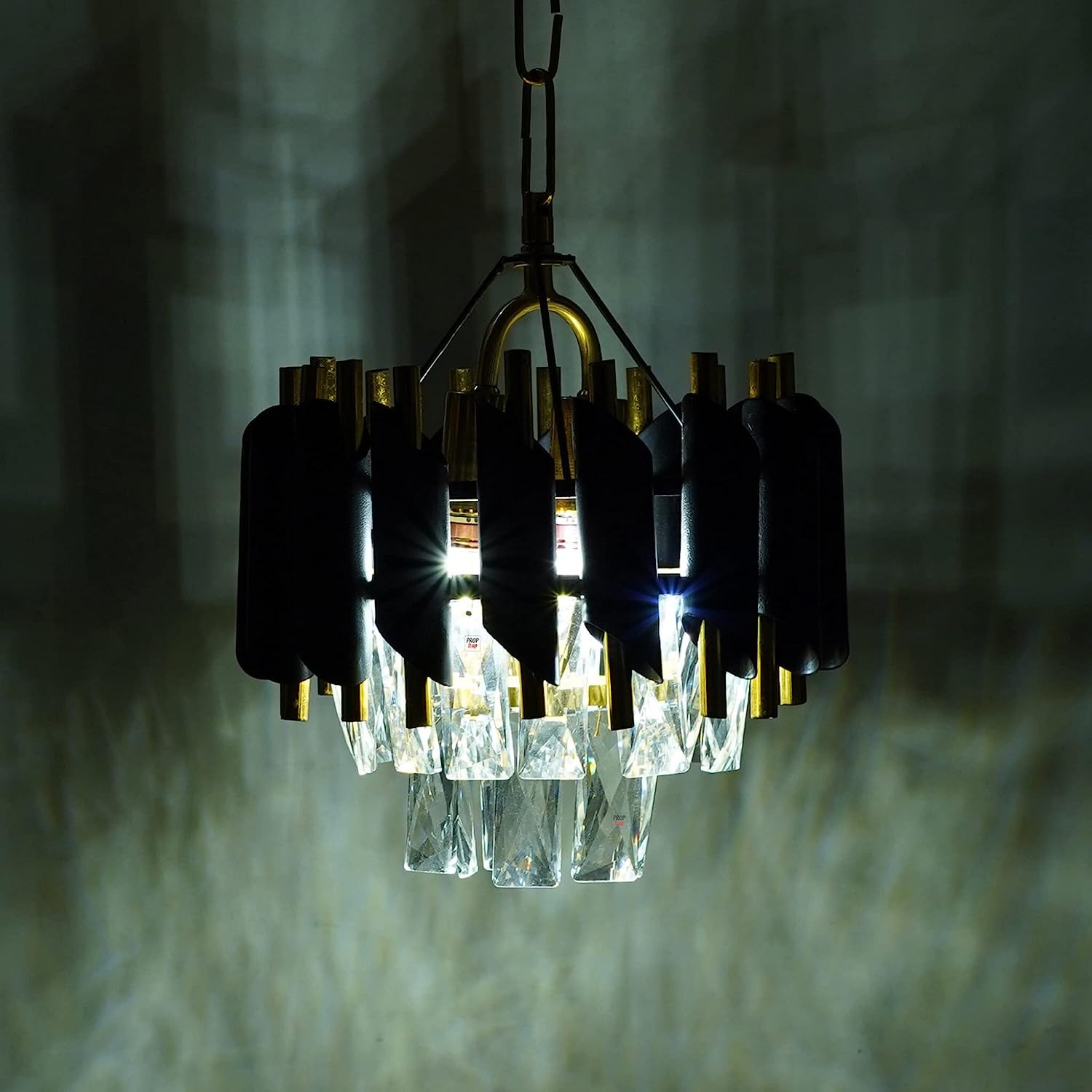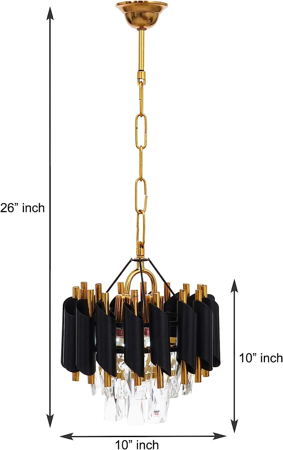 Prop It Up Precious Crystals, Round Shaped Black Finished Pendant/Hanging Small Chandelier Celling Light, with as Four/K-9 Crystals, led Pendant Light Bulb not Included Chandelier Ceiling Lamp (12")
