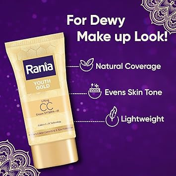 Rania CC Cream SPF50PA++IR with Vitamin C,24K Gold|Tinted moisturizer|Foundation & skincare|Lightweight|9-5 long lasting |Natural makeup look,25g