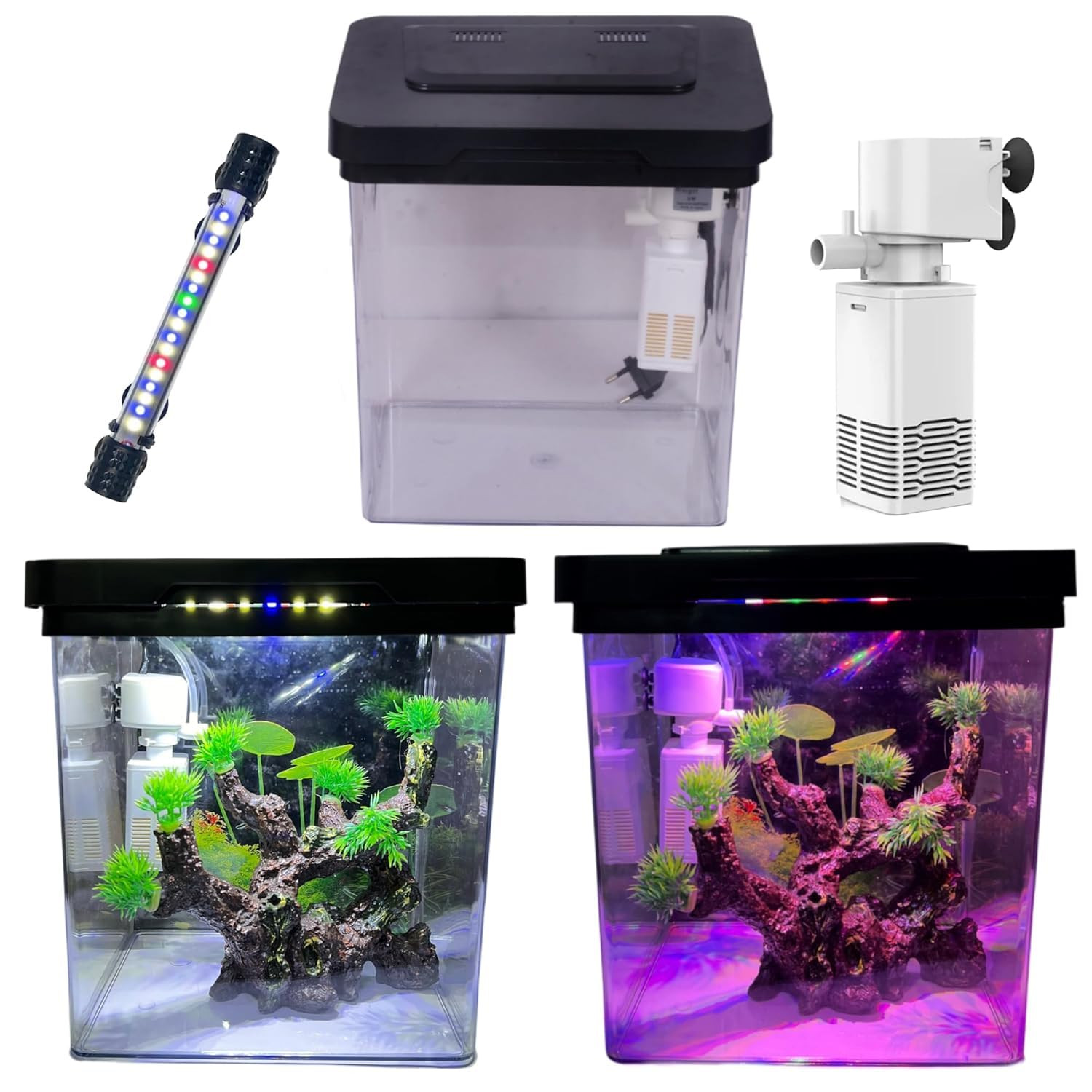 • Complete Aquarium Kit: This set includes a 5-litre glass aquarium, a powerful submersible filter pump, and LED lighting for creating an ideal aquatic environment.