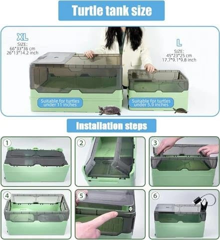 rizopets Turtle Tank kit with Filter+Water Pump+Heat lamp, Wheels, Easy to Move, Imitate The Natural Flows, Suitable for Small Turtle Horned Frog Hermit (Medium) Size 44cm x 22 cm x 25 cm (Medium)