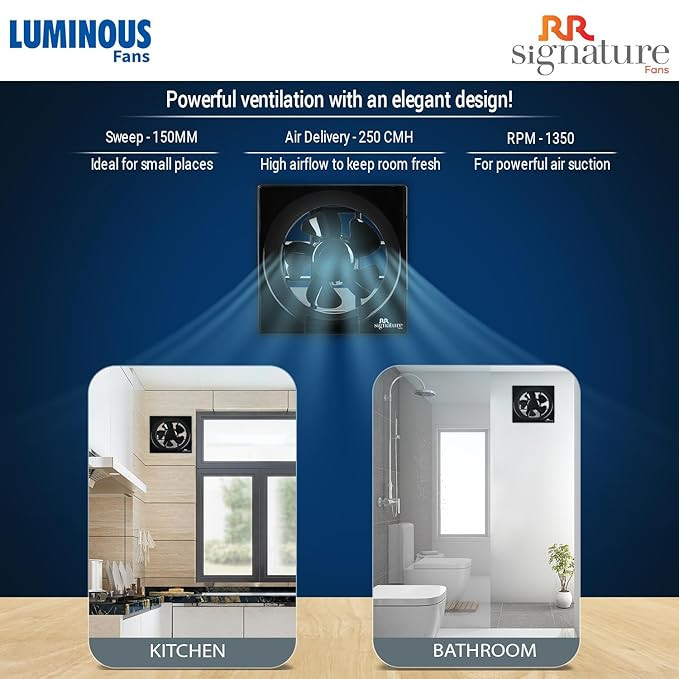 RR Signature Vento Deluxe 150 MM Exhaust Fan For Kitchen, Bathroom with Strong Air Suction, Rust Proof Body and Dust Protection Shutters (Black), 3 Year Warranty