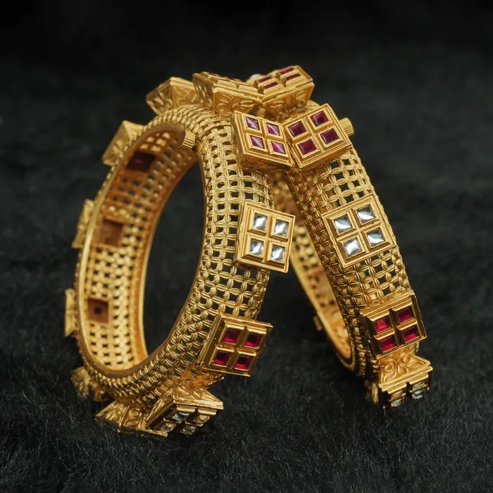 ruby white design gold plated copper bangles -