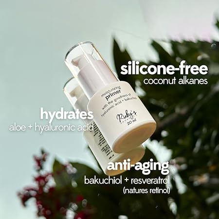 Ruby's Organics Primer for Face Makeup- Infused with Hyaluronic Acid and Bakuchiol, Moisturizing, Hydrating, Non-Greasy, Lightweight, Minimise Pores and Fine Lines, All Skin Type, Vegan - 20ml