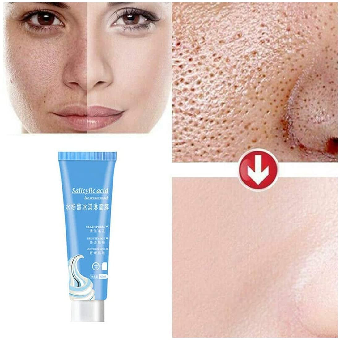 • Are you still suffering from acne problems? For example, acne marks, enlarged pores, shiny face and other skin problems, use this mask to make your skin soft like ice cream.