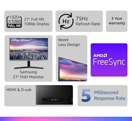 Refresh Rate - Max 75Hz || Color Support - Max 16.7M || Brightness (Typical) - 250 cd/㎡ || Response Time (ms) - 5 (GTG)
