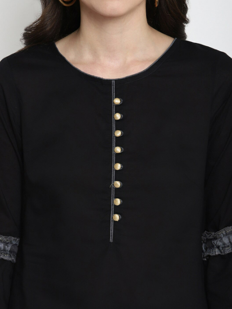 Black Floral Kurta with Trousers & Dupatta -