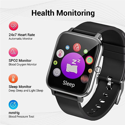 • 【24x7 HEART RATE & SPO2 MONITORING 】The watch comes with a 24x7 heart rate & SpO2 monitor (blood oxygen levels,) and sleep monitoring features to keep a tab on your overall health.