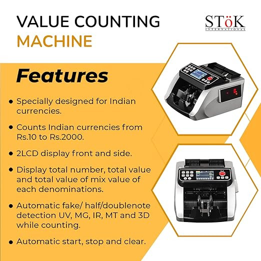 SToK (ST-VCM02) Fully Automatic Mix Note Value Counting Machine with Fake Note Detection Using Color Sensors + 3D Technology - Silver (1 Year Offsite Warranty)