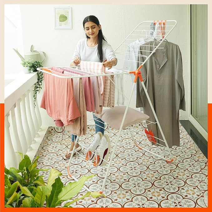 Bathla Foldable Clothes Drying Stand - Neo | 26 Drying Rails - 45 Feet Drying Length | Lightweight, Alloy Steel | Bright Orange | 2 Year Warranty