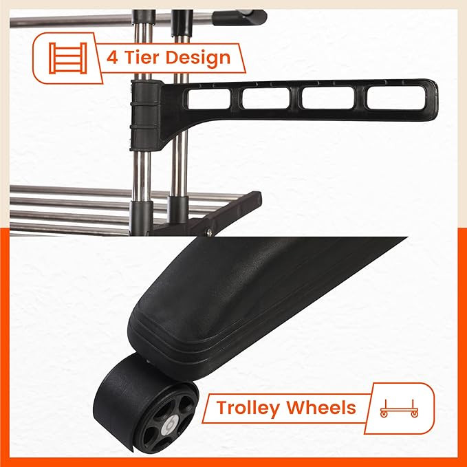 Bathla Mobidry Terra 4 Level Modular Cloth Drying Stand (Stainless Steel - Black - Extra Large)