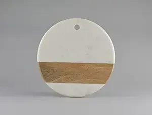 Stone Essential round hand crafted Marble and Wooden Chopping Board, Cutting Board, Multipurpose Board, Cheese- Wine Platter, Serve ware /kitchen essential