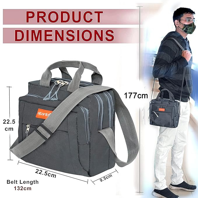 The sling bag has one compartment which can hold a mobile phone, wallet, Tablet office, travel and other daily things. Note : You can't use as a Tiffin bag.