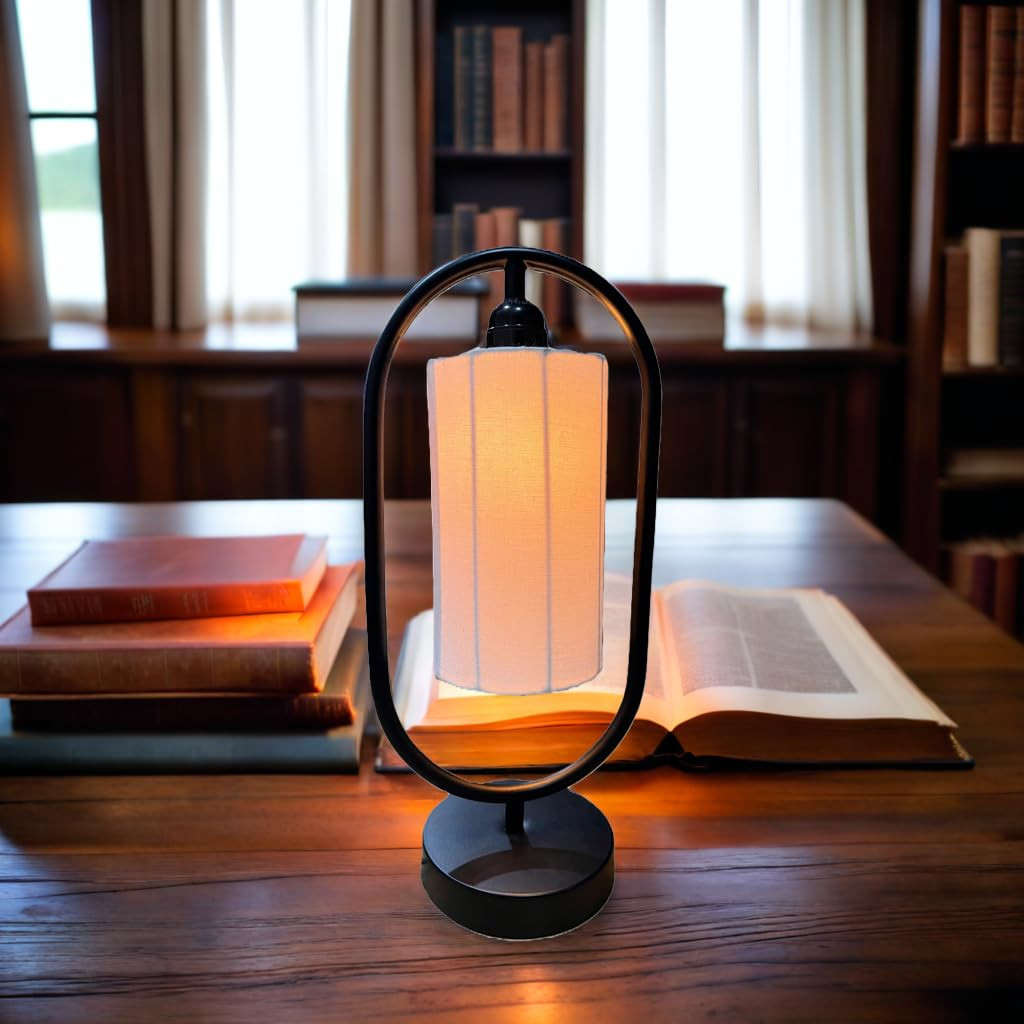• Sleek Design: Elevate your home décor with the modern and sophisticated Oval Frame Table Lamp featuring a sleek black metal oval frame and a soft fabric cylindrical lampshade.