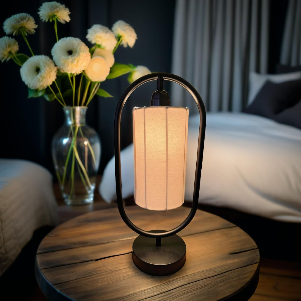 TARUN'S HOME DECOR Table Lamp Or Bedside Table Lamp with Shade for Bedroom/Living Room/Guest Room/Hotels/Restaurant(Pack of One,Oval,Black,with Bulb)
