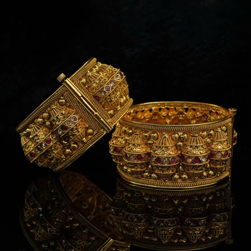 Traditional Floral Ruby white Design gold Plated Bangle set