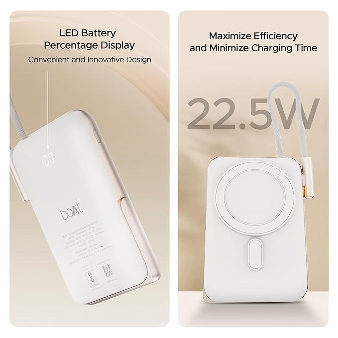 boAt Energyshroom PB330 MagnaCharge 10000 mAh Magnetic Wireless Power Bank w/ 15W Wireless Charging, Metal Stand,Magnacharge Ring for iPhone and Android Phones w/Wireless Charge(Black)