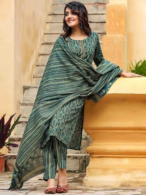 • Kurta Color- Green, Pant Color- Green, Dupatta Color- Green.