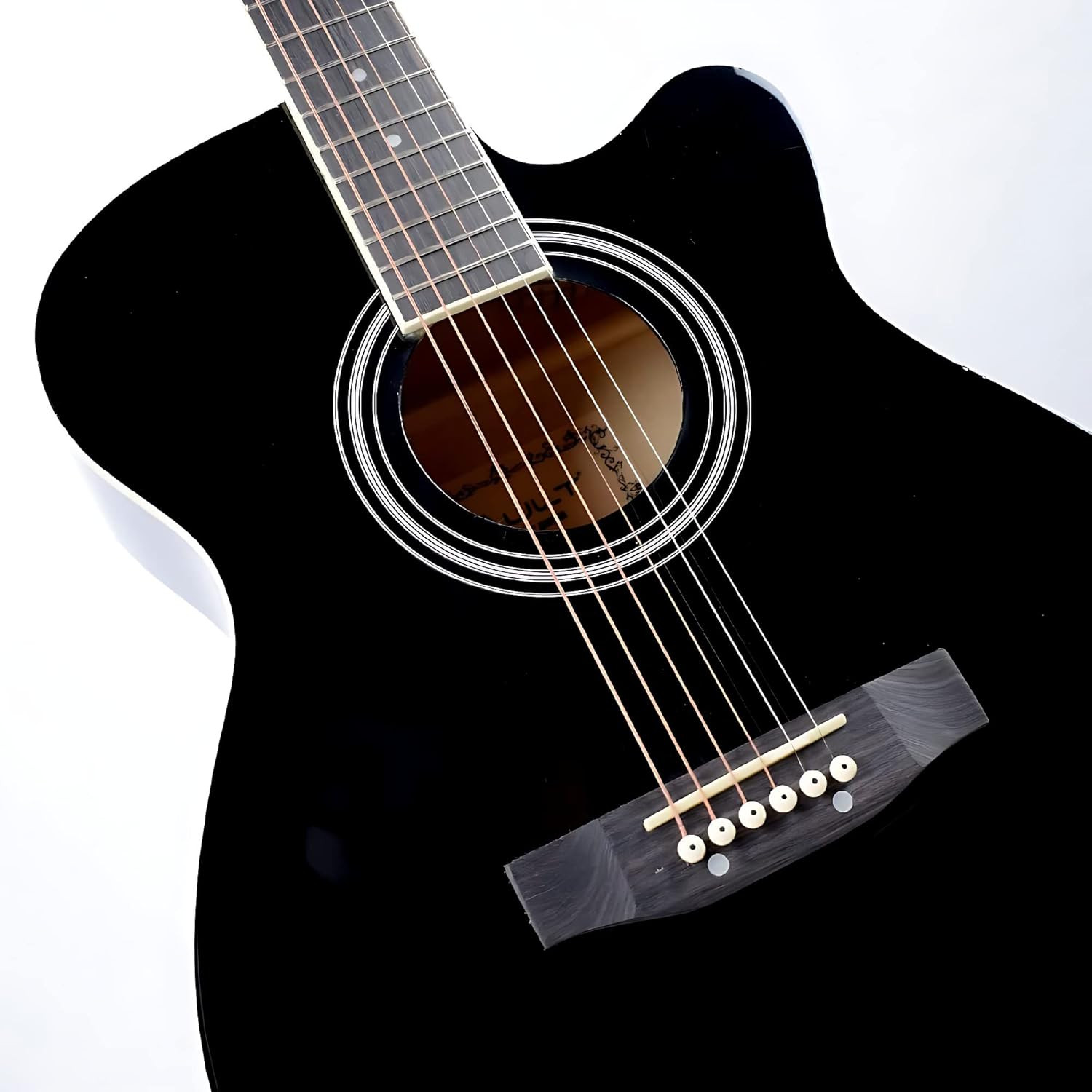 Vault EA20 Guitar Kit with Learn to Play Ebook, Bag, Strings, Straps, Picks, String winder & Polishing Cloth - 40 inch Cutaway Acoustic Guitar Black
