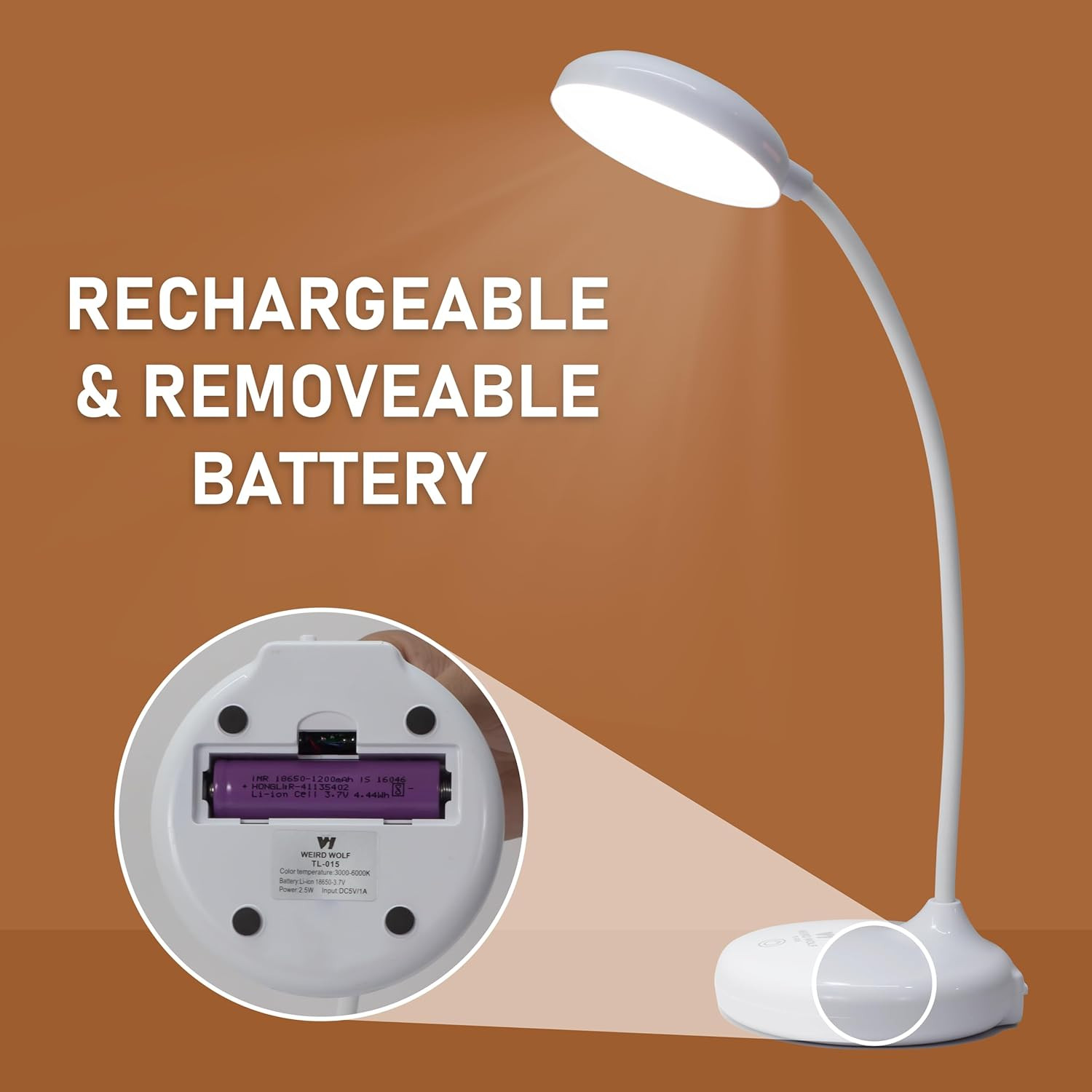WEIRD WOLF LED Study/Table/Desk Lamp with 3 Colour Mode, Lithium Battery, 6 Month Warranty (Plastic, White, Pack of 1)