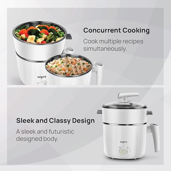 Wipro Vesta 1.2 l multicooker Kettle | Concurrent Cooking |Cool Touch body | Dual Temperature Control |Triple