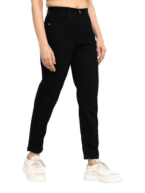 Women's Black High-Waisted Straight Jeans, Regular Fit