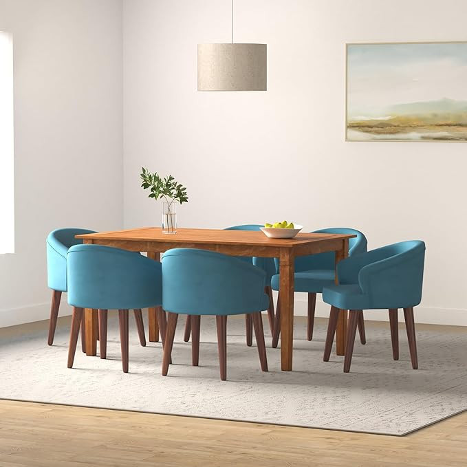 Premium Material: Made from high-quality solid Sheesham wood, known for its durability and rich grain patterns, The Dining Chair Is A Sweet Velour Seat. Modern Meets Mod In The Shape And Wood Legs.Basic Legs Aeembly Required