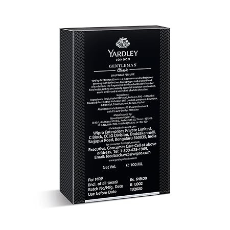 Yardley London Gentleman Classic Perfume Spray, Fresh Woody Fougère Notes, Masculine Fragrance, Perfume For Men, 100ml