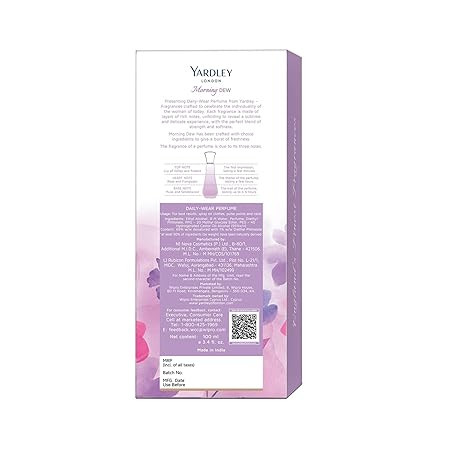 Yardley London Morning Dew Perfume Spray| Fresh Floral Scent| 90% Naturally Derived| Lilly Of Valley & Frangipani| Perfume For Women| 100Ml