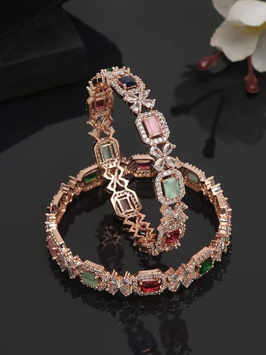 YouBella Jewellery Stylish Rose Gold Plated Multi-Color Stone Studded Bangles for Girls and Women