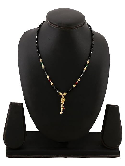 Style: Ethnic & Stylish Looks, Traditional Gold Plated Black Beads Mangalsutra Pendant Necklace Stunning and Preciously Suitable Looks for all Kinds of Occasions- Party / Festival / Daily.
